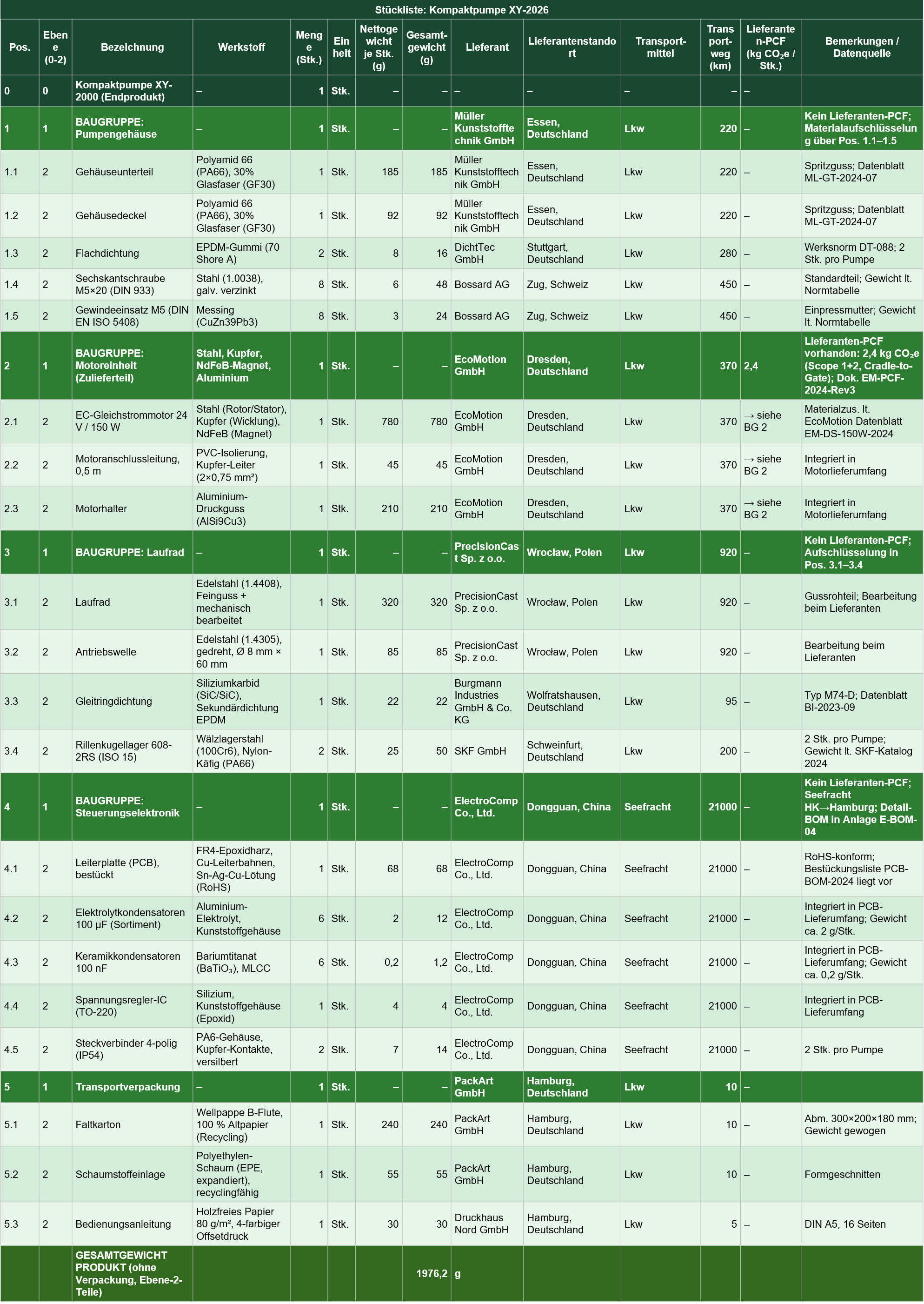 Wie sieht eine LCA-taugliche Stückliste also aus? Zum Beispiel so, wie hier gezeigt: